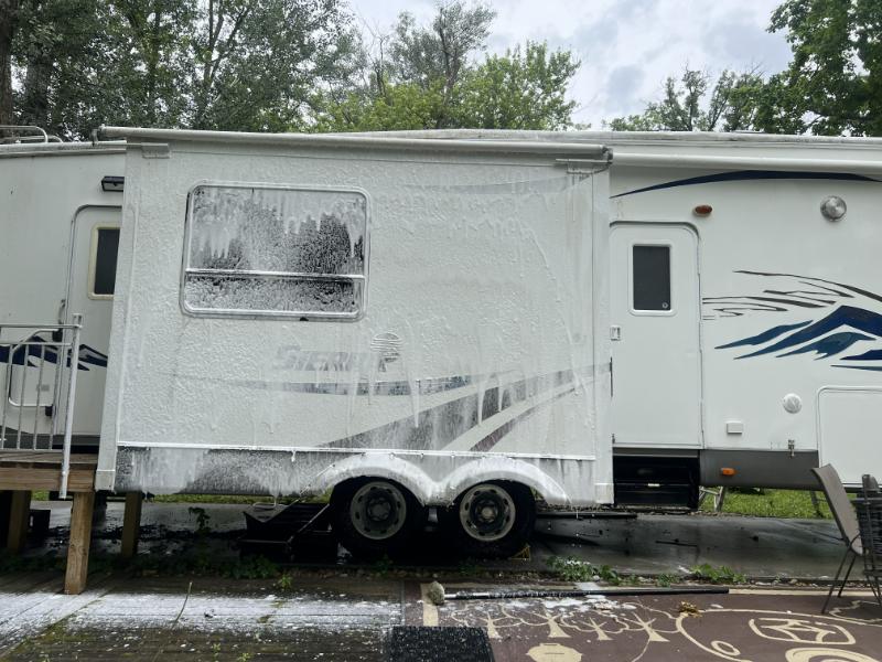 Exterior Detail 5th wheel, mold & mildew removal, roof cleaning, ceramic coated when done. All Bio Degradable Chemicals used, Washed and Rinsed with DI Spot free water.
